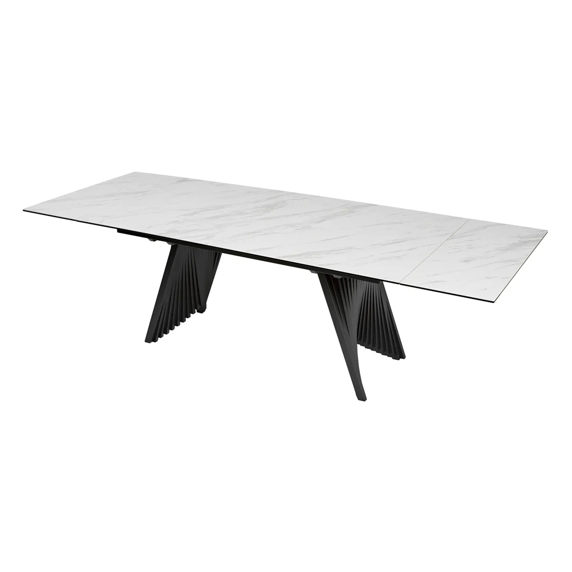 Большой обеденный стол с оригинальной массивной опорой для просторной гостиной, кухни, столовой. Фактура "природных материалов" таких как камень, дерево-всегда актуальна для столов с керамической столешницей, такие столы имеют преимущественно большие цельные площади поверхности и фактура смотрится наиболее выигрышно. Торцевая раскладка с двух сторон позволяет регулировать длину стола необходимую для разного количества пользователей-можно использовать одну или сразу две вкладки. Кроме эстетичного вида у керамики масса других преимуществ-экологичность, простота в уходе износостойкость и долговечность, что позволит с комфортом пользоваться столом очень долгое время и он будет всегда иметь вид как в день покупки.